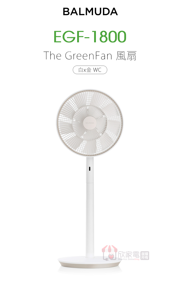 BALMUDA 百慕達 The GreenFan 風扇-白×金