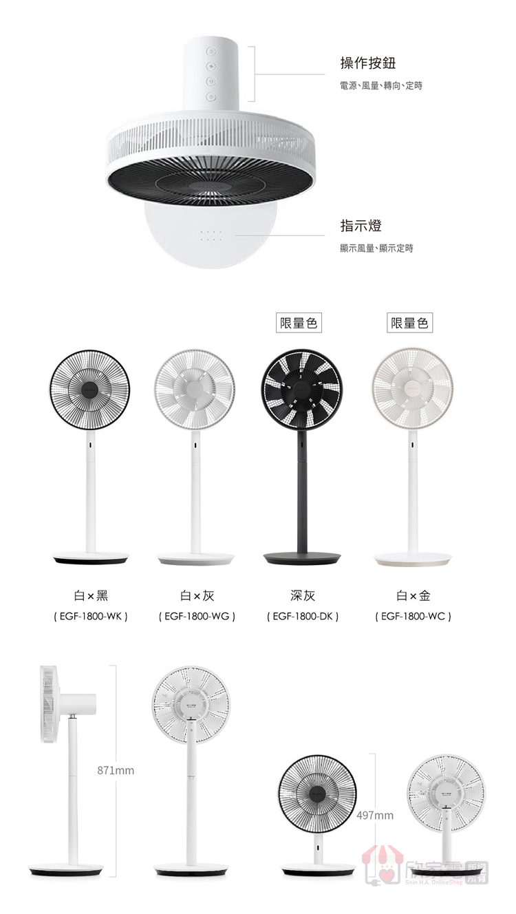 本機尺寸(台扇高):330mm(寬)× 320mm(深)× 497mm(高)