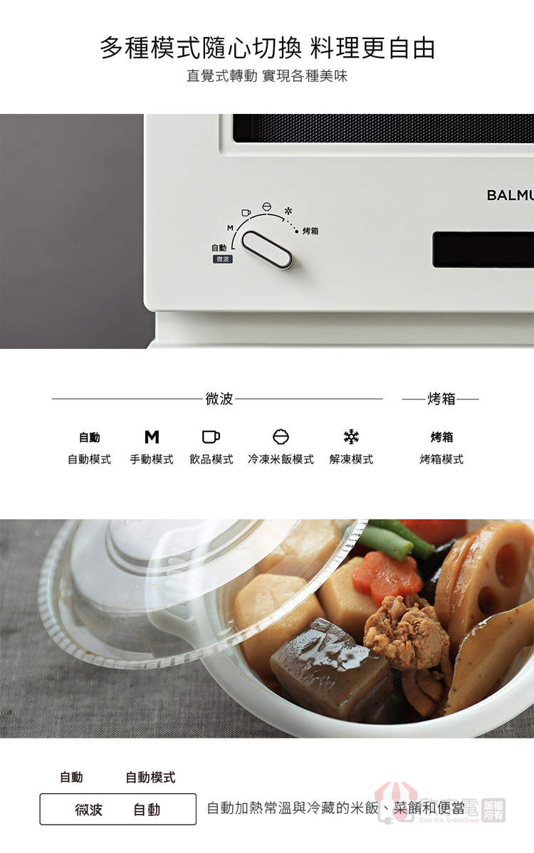 功能模式:1. 自動模式2. 手動模式 3. 飲品模式 4. 冷凍米飯模式 5. 解凍模式 6. 烤箱模式