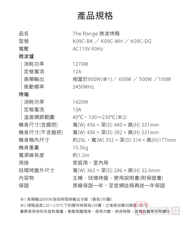 包裝內容:主機、琺瑯烤盤、使用說明書(附保證書)