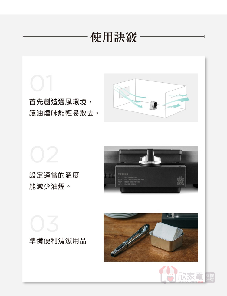 包裝內容:機身、包覆式烤盤、接油盤、煎鏟、說明書