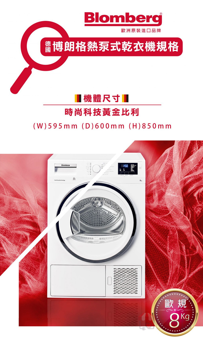 Blomberg 德國 博朗格 歐規8KG Heat Pump前開熱泵除濕式乾衣機-電力型