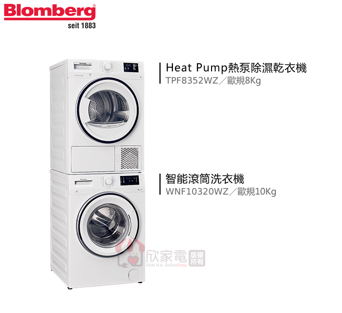 Blomberg 德國 博朗格 歐規8KG Heat Pump前開熱泵除濕式乾衣機-電力型 TPF8352WZ