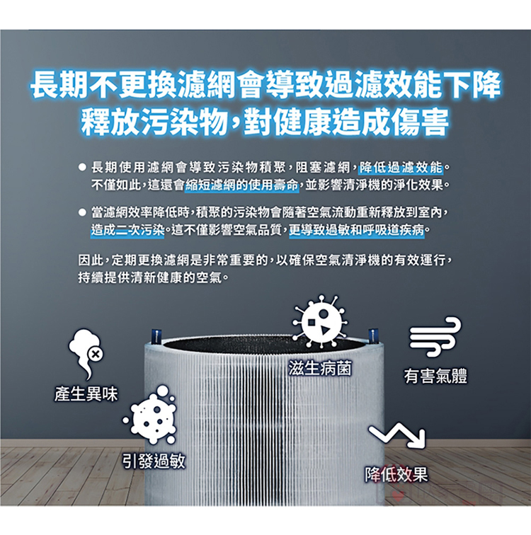 ※以上更換時間僅為建議,需依照個人使用頻率、環境不同而定;如環境內污染源較多,耗材壽命可能縮短。