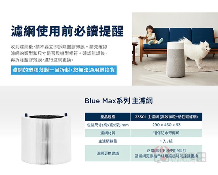 Blueair 空氣清淨機替換濾網【一組1入,適用 Blue Max 3350i】