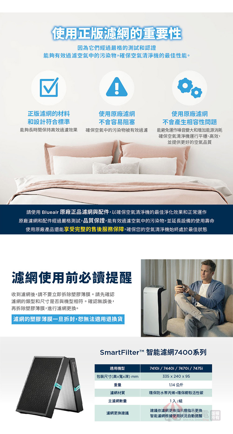 適用機型:BLUEAIR空氣清淨機 #7400系列—7410i、7440i、7470i