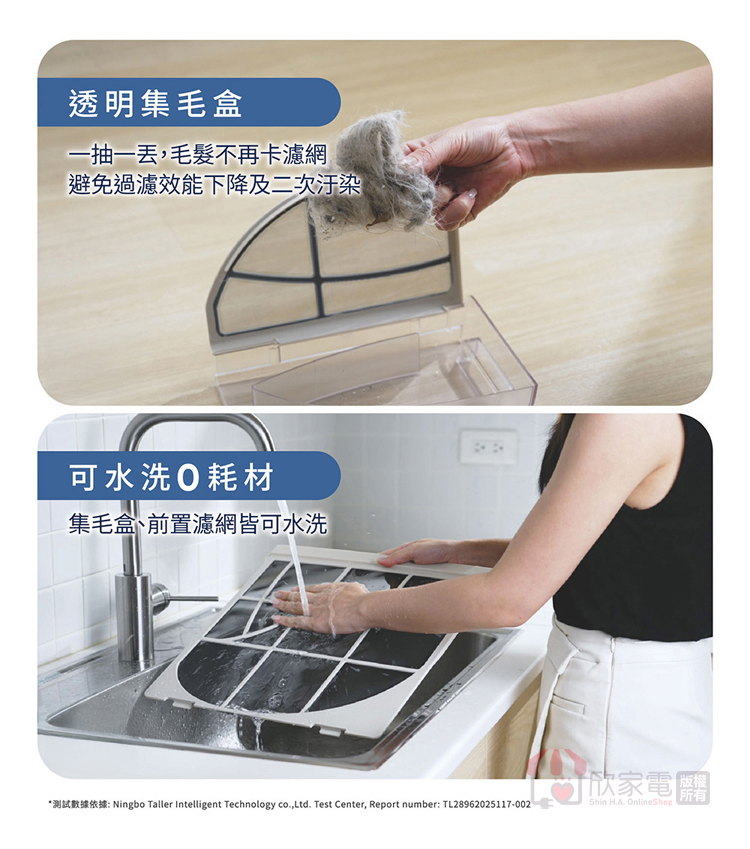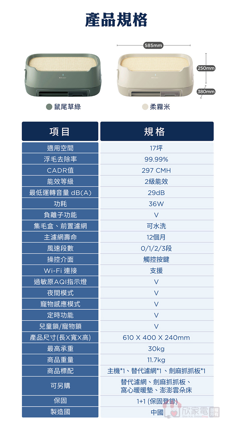配件:保證書、中文說明書、電源線、前置濾網1片、逗貓棒固定夾