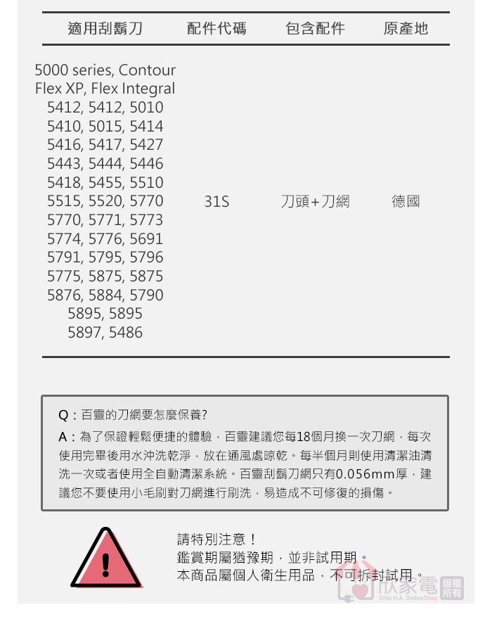BRAUN 德國百靈 刀頭刀網組