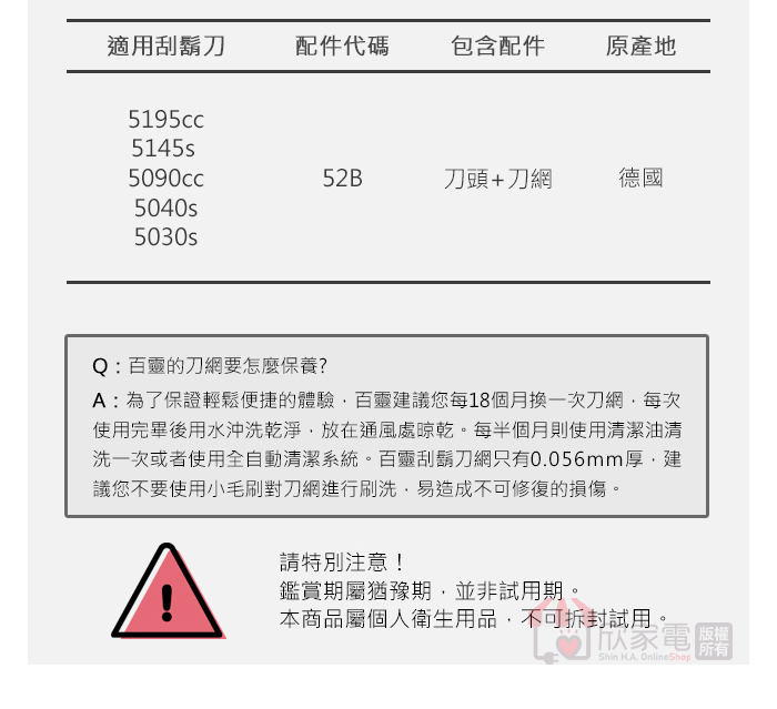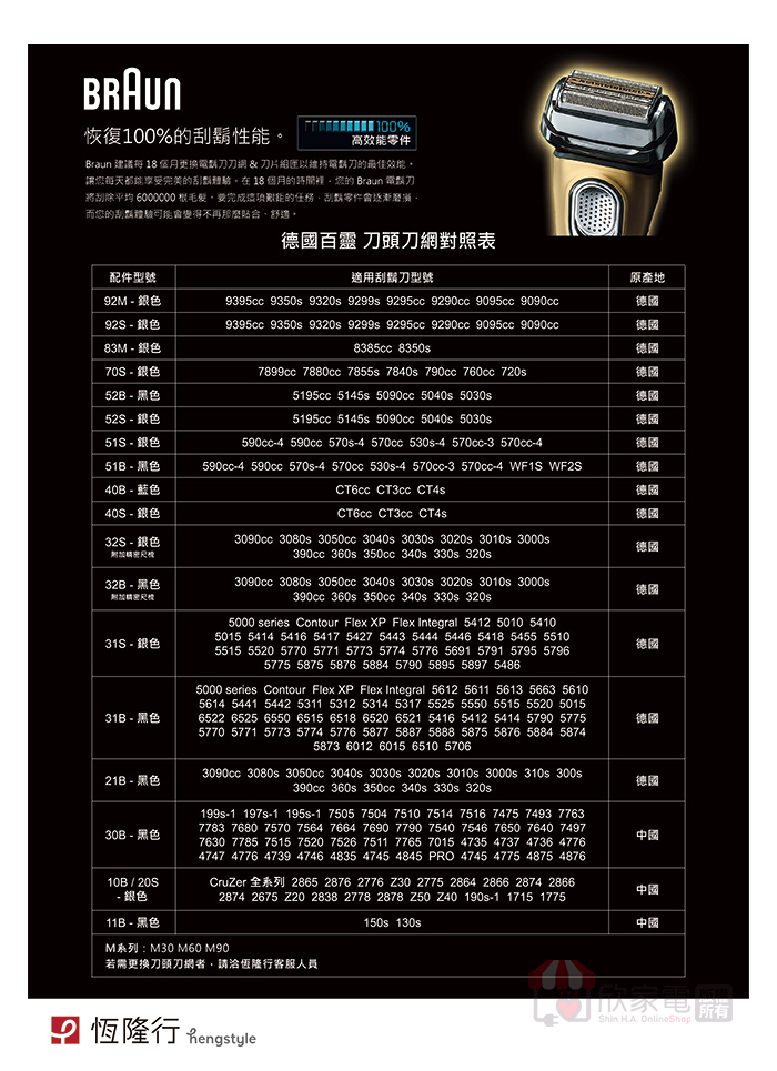 BRAUN 德國百靈 刀頭刀網組