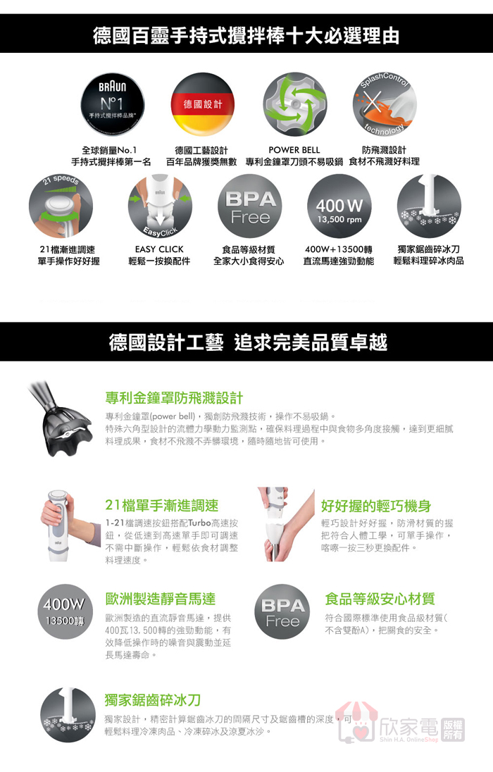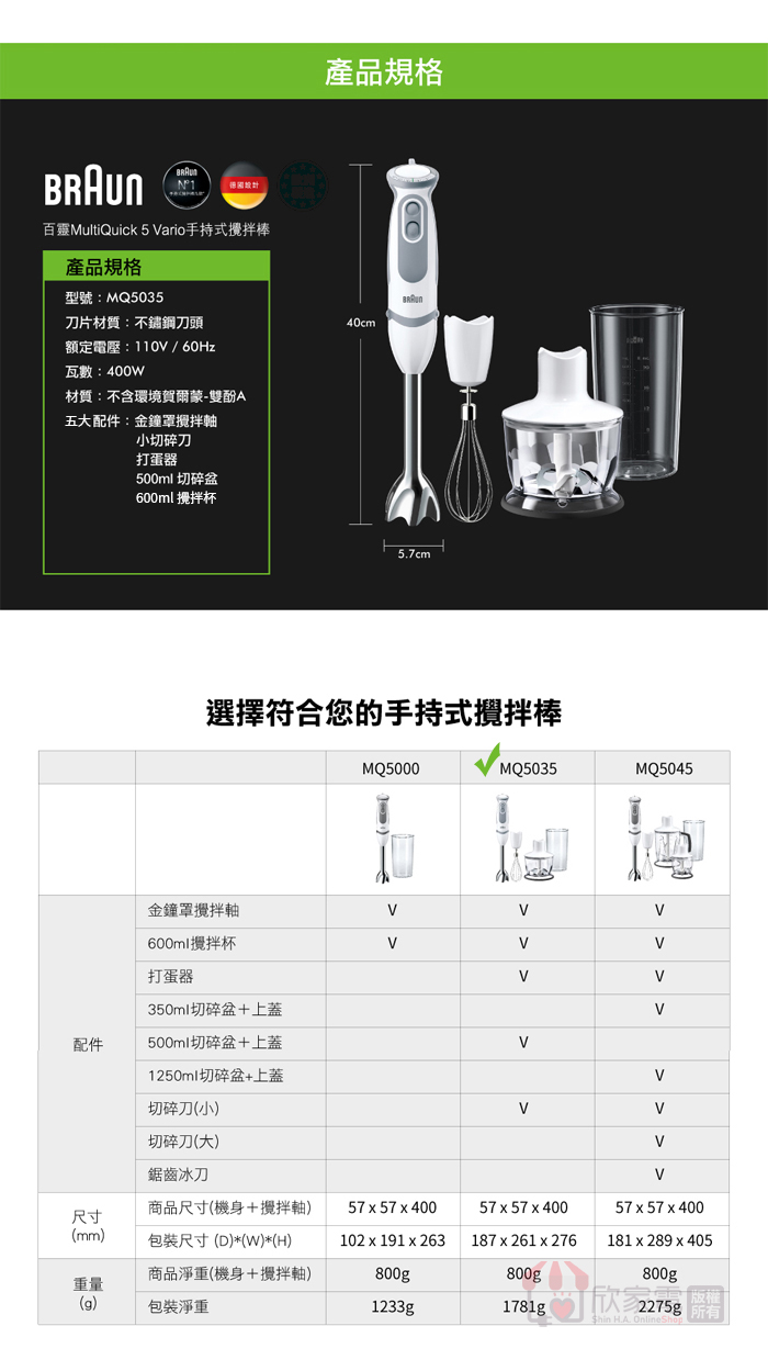 BRAUN 德國百靈 MultiQuick5 Vario 手持式攪拌棒-附五大配件