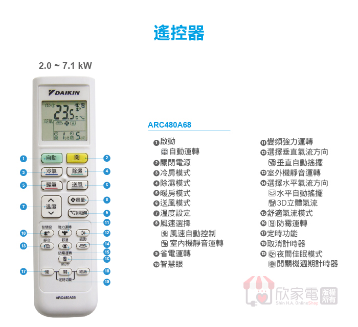 冷氣能力:2.2 kW
