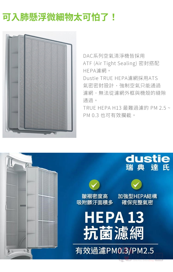 Dustie TRUE HEPA濾網 ×2 ( DAFR-70H13-X2,建議更換期限:連續使用8760小時(約12個月) )