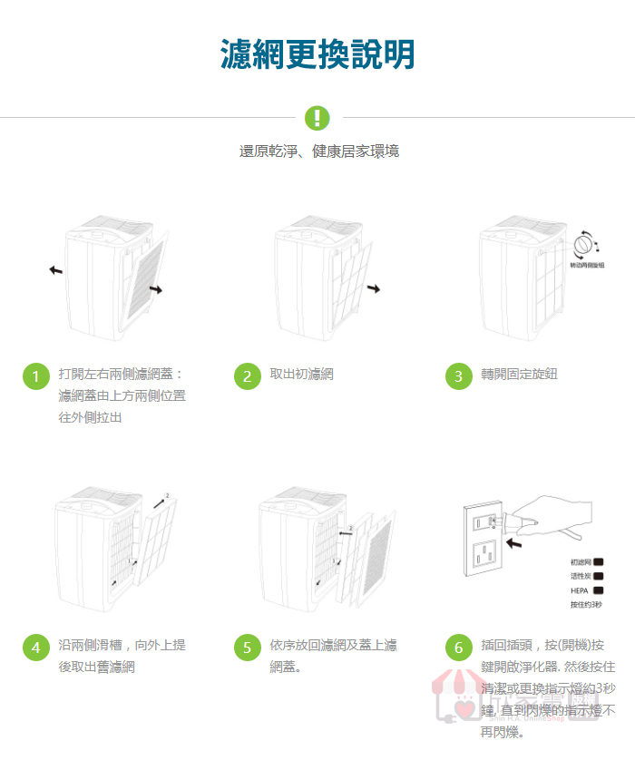 (濾網更換依照實際使用狀況與空氣品質而定)