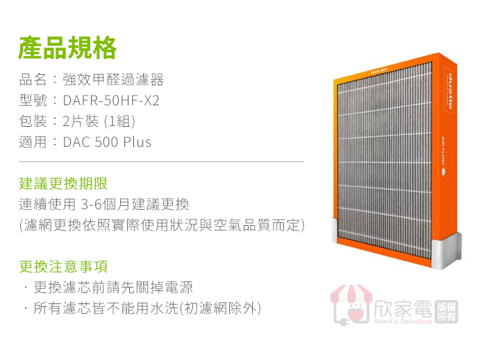 (濾網更換依照實際使用狀況與空氣品質而定)
