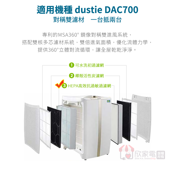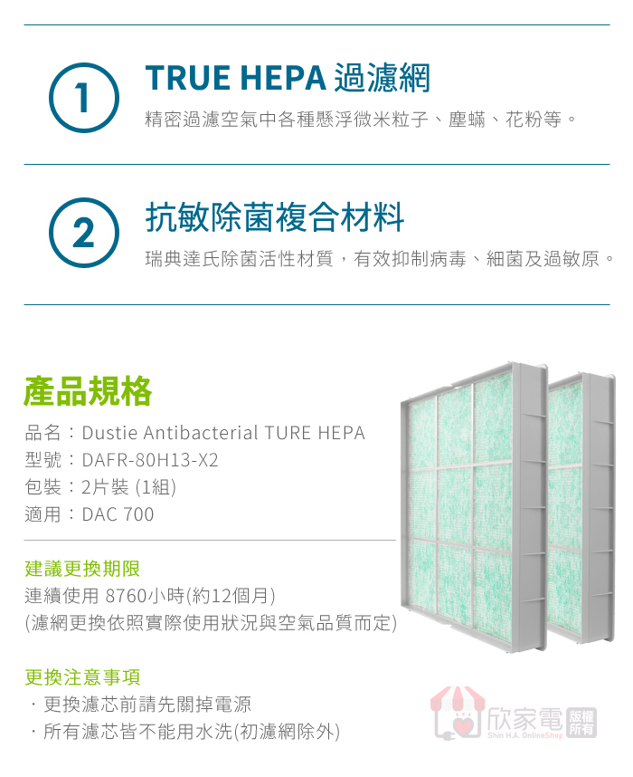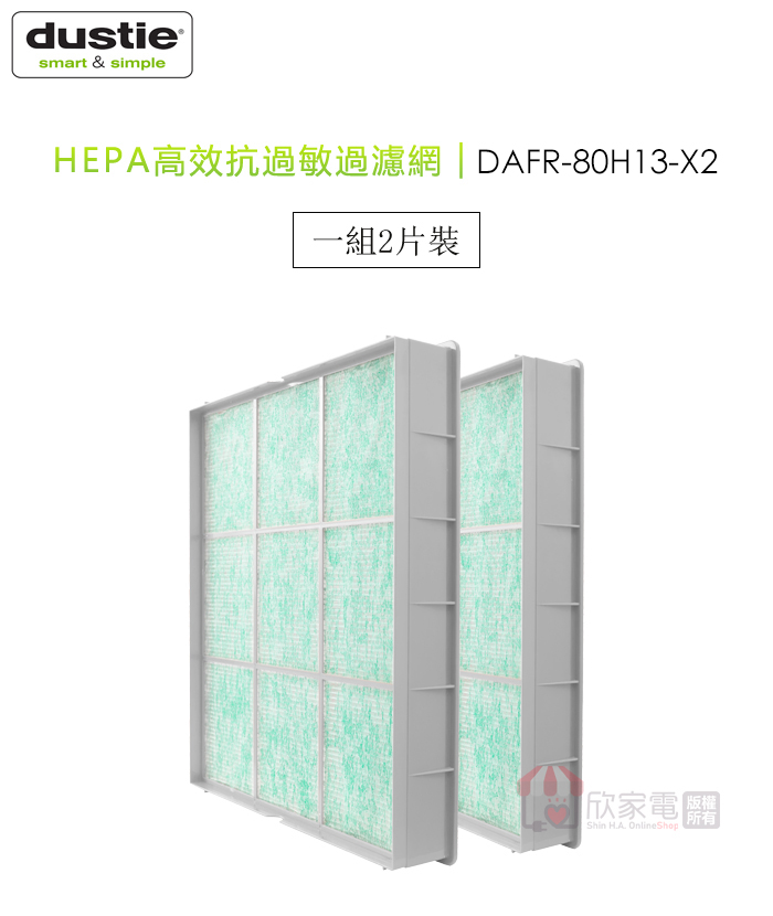 Dustie 瑞典 達氏 HEPA高效抗過敏過濾網【一組2入】