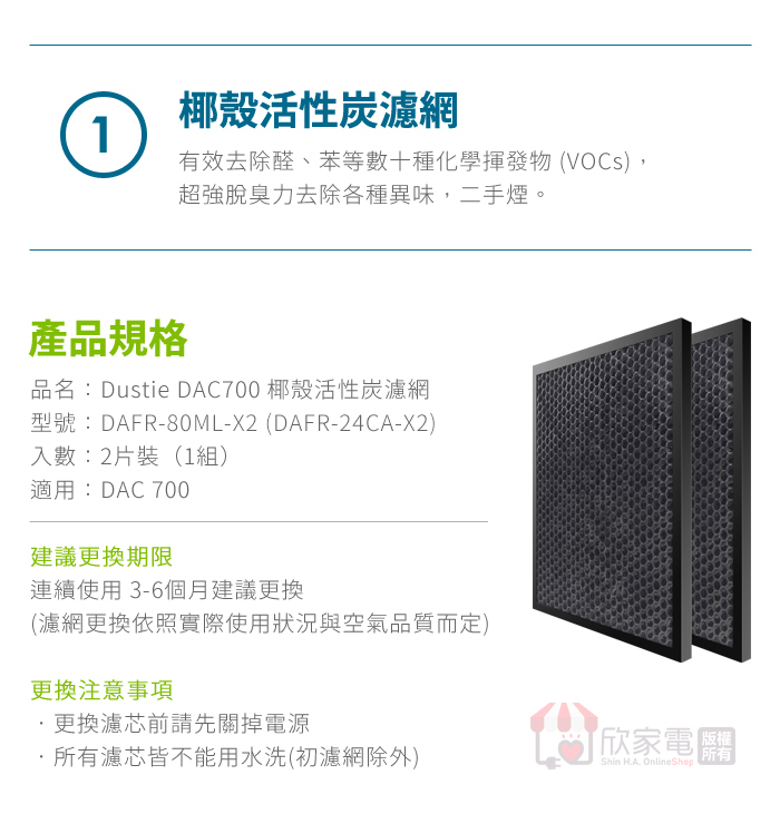 (濾網更換依照實際使用狀況與空氣品質而定)