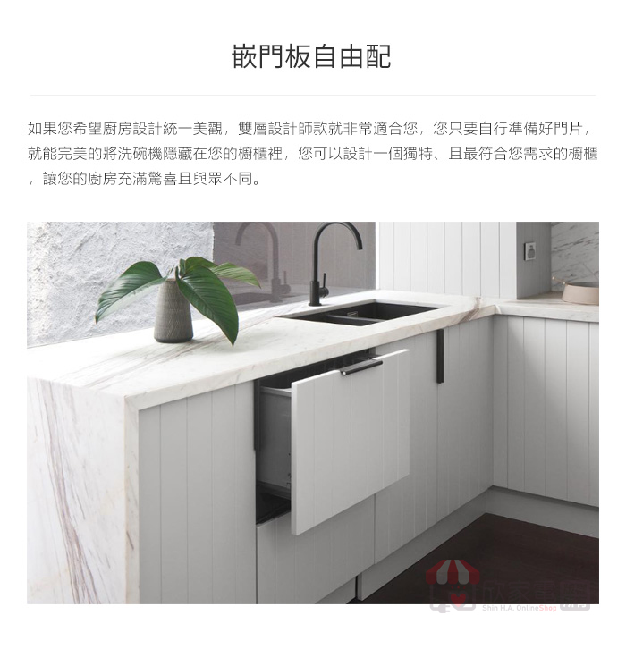 ※此為嵌門片款,門片、門把需自行準備,與櫥櫃整體設計。