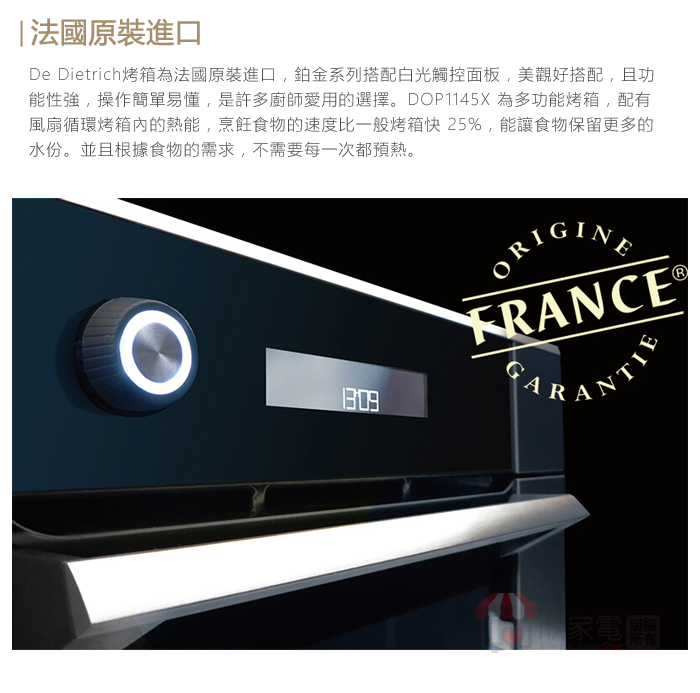 法國帝璽 De Dietrich 45公分 鉑金系列 40L多功能智能烤箱