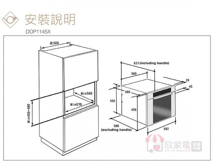 嵌入尺寸:(寬)560(深)560(高)455-460 mm