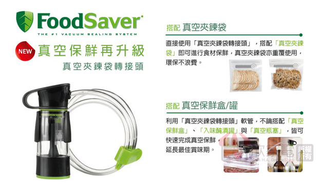 美國 FoodSaver 真空夾鏈袋轉接頭組