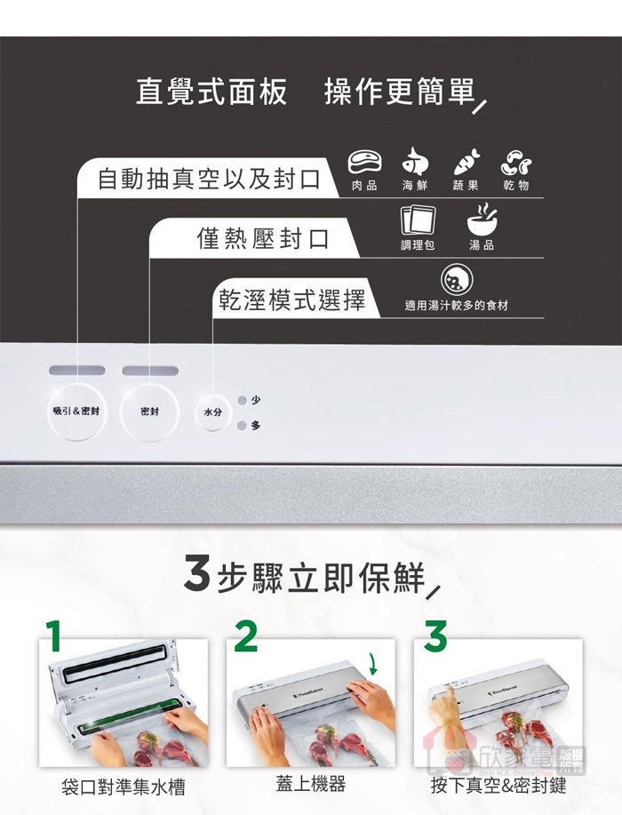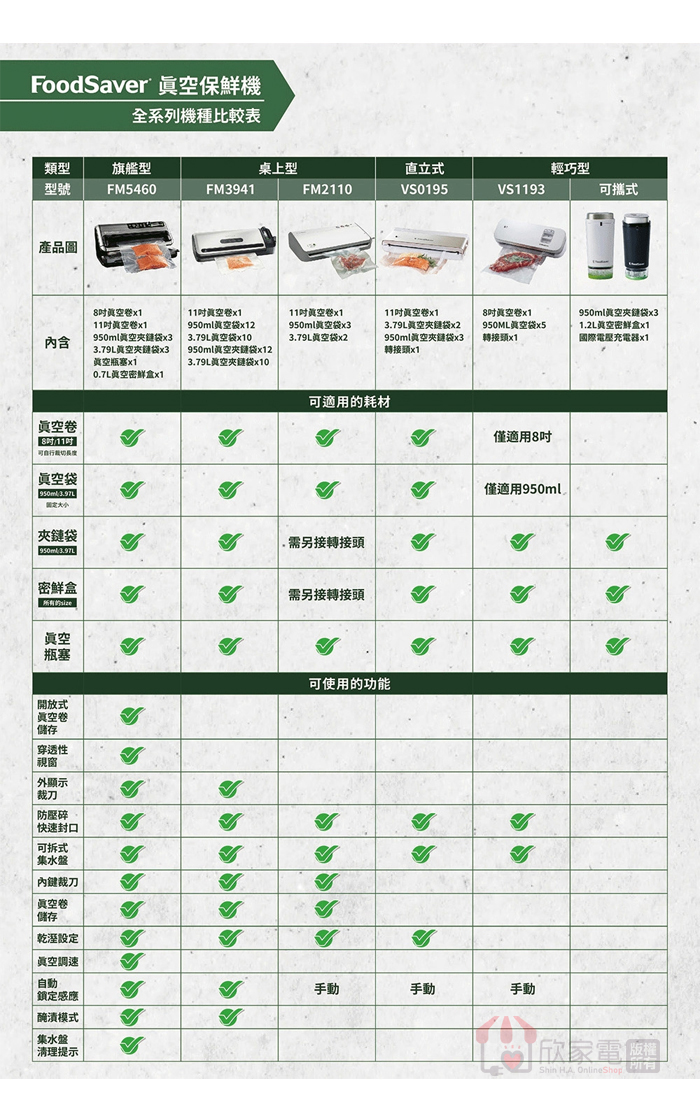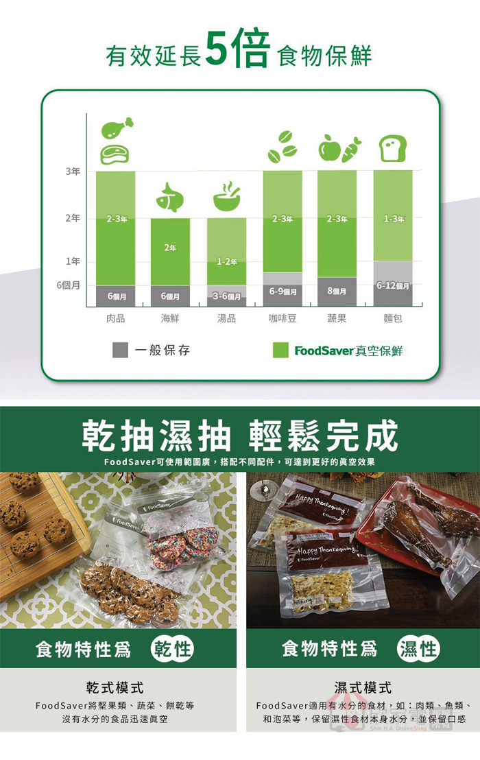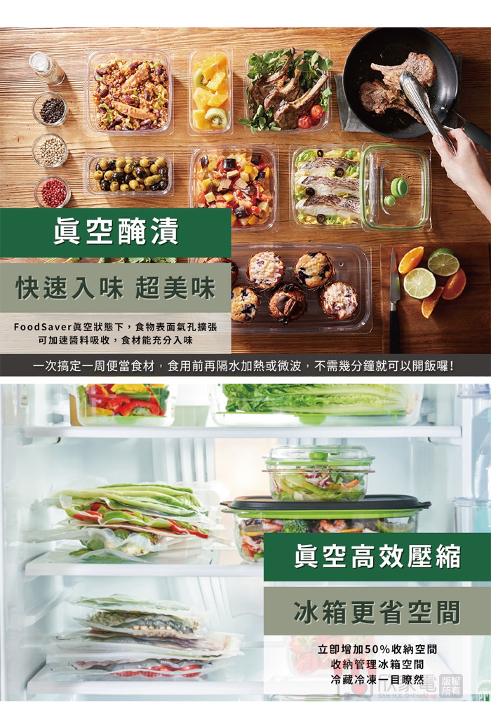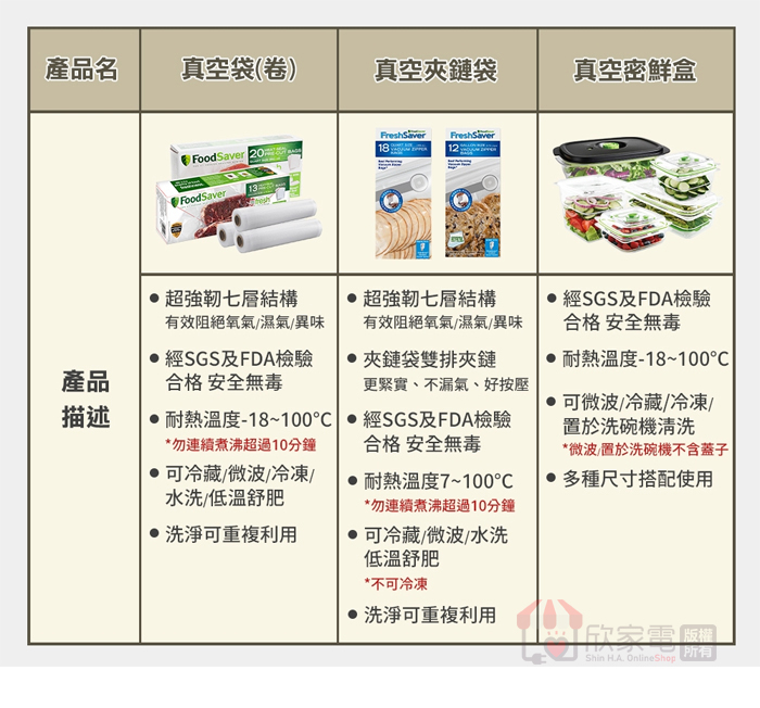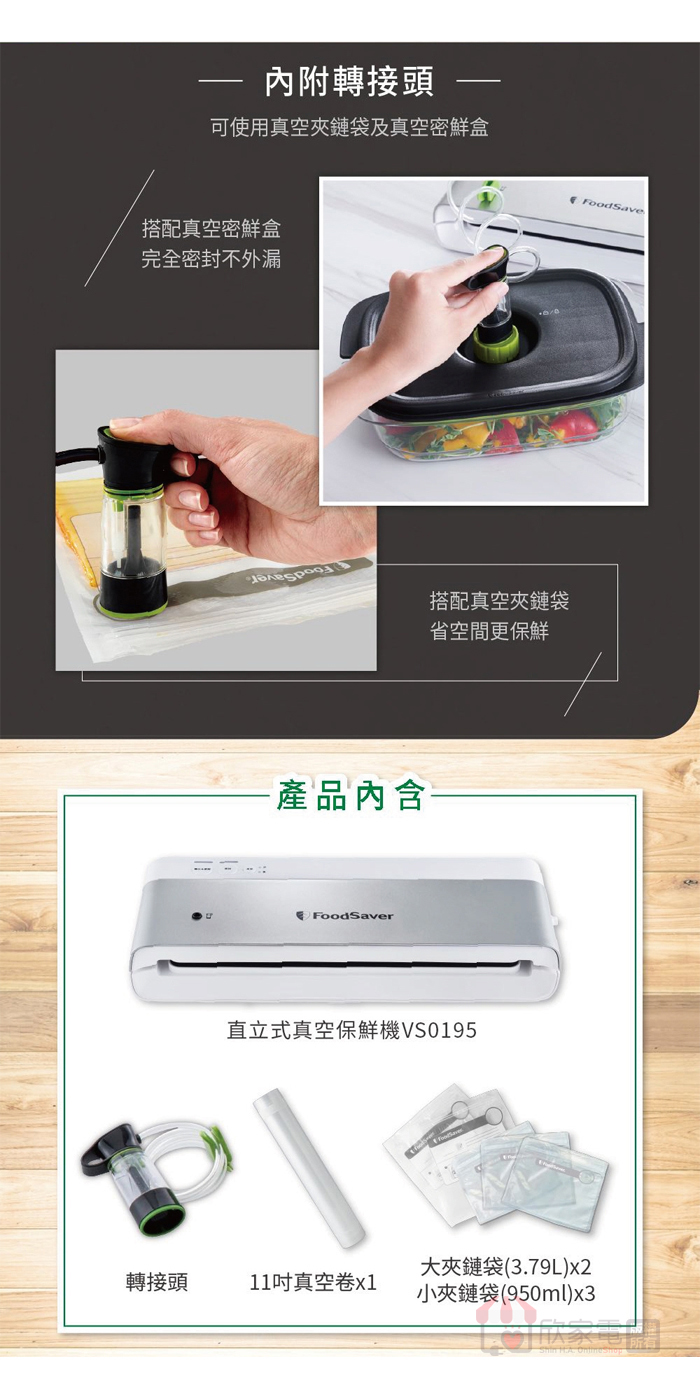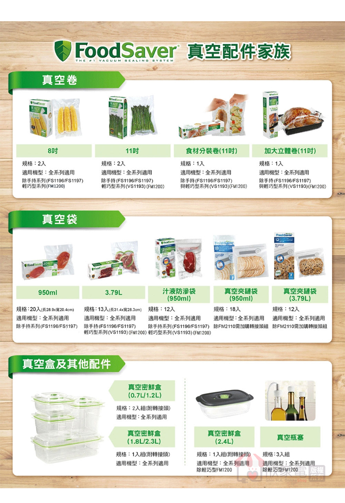 內容物:11" 真空卷*1、真空夾鏈袋(3.79L)*2、真空夾鏈袋(950ml)*3、轉接頭*1