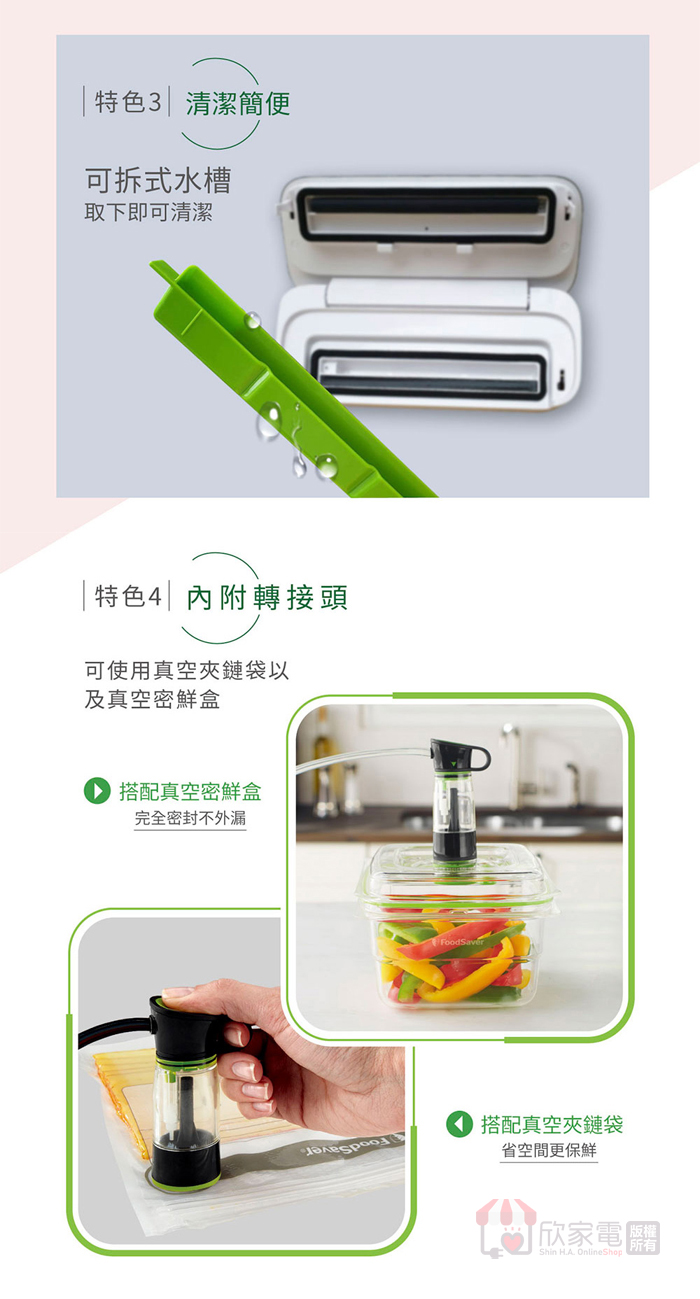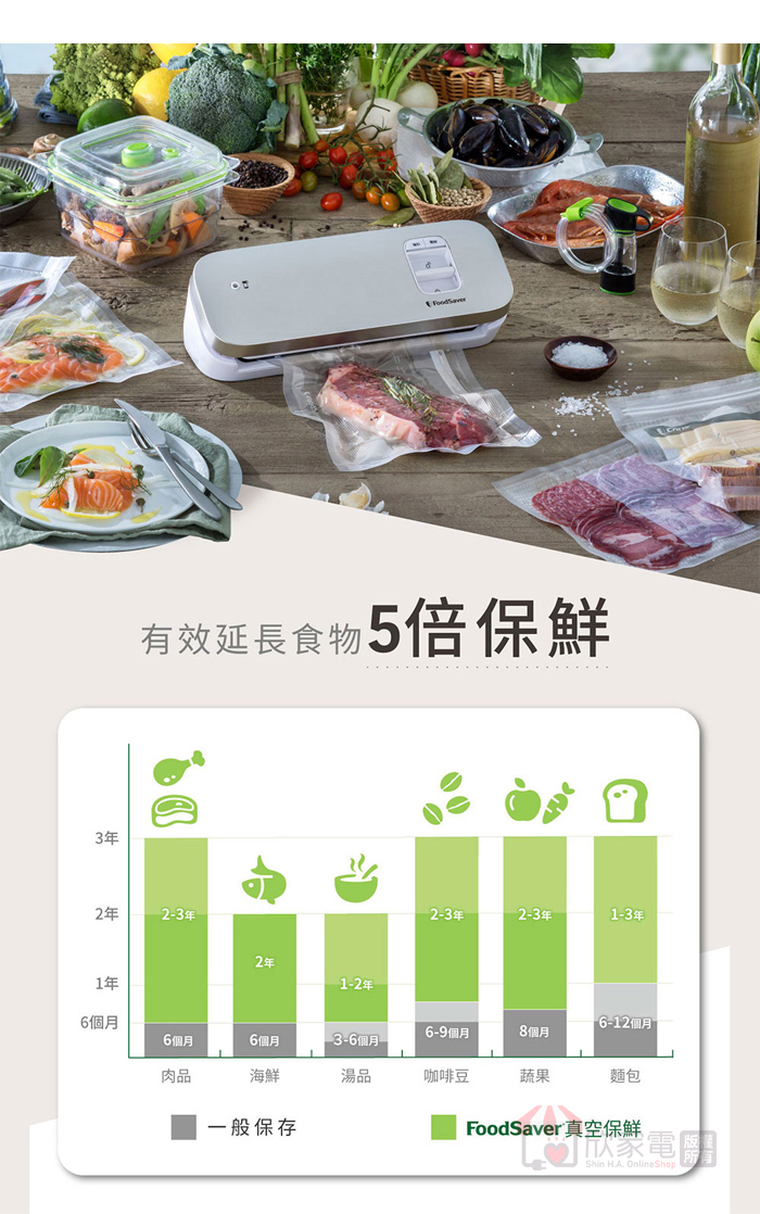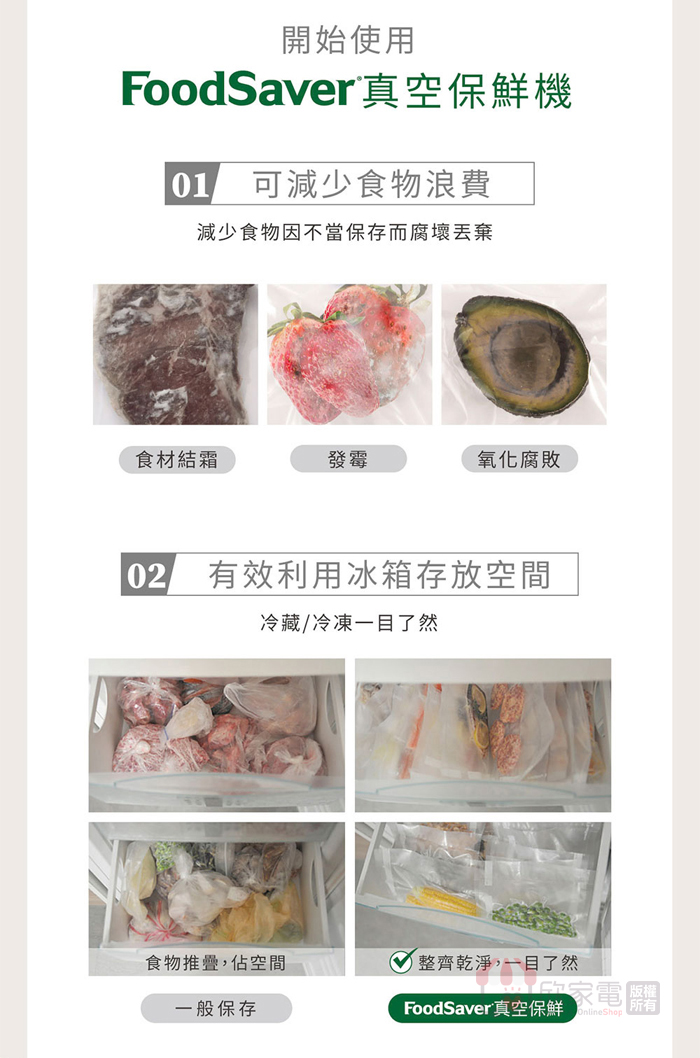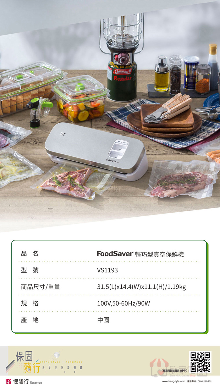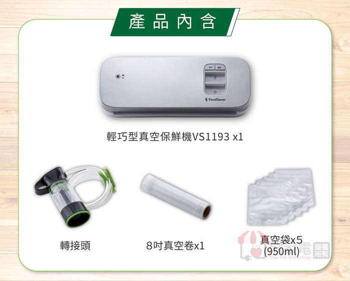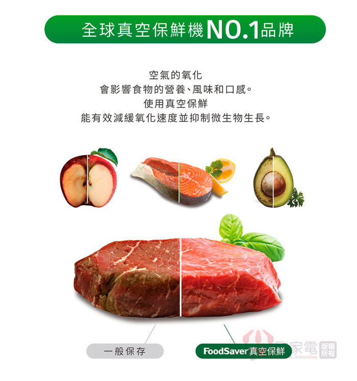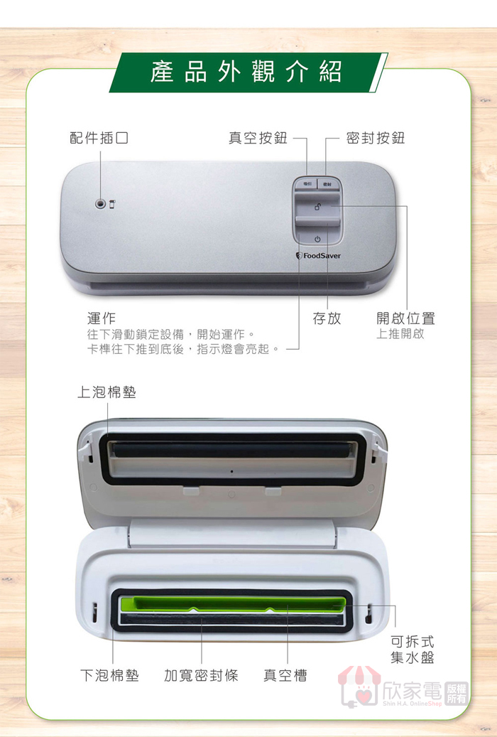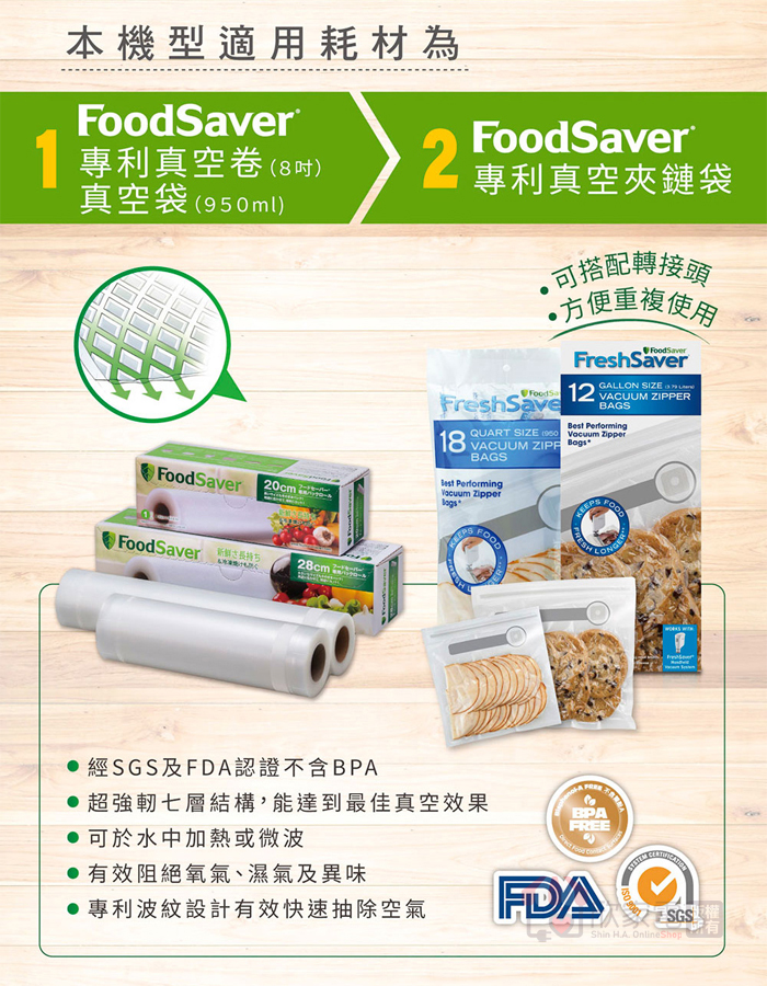 適用配件:FoodSaver 8"專用真空卷 / 950ml真空袋