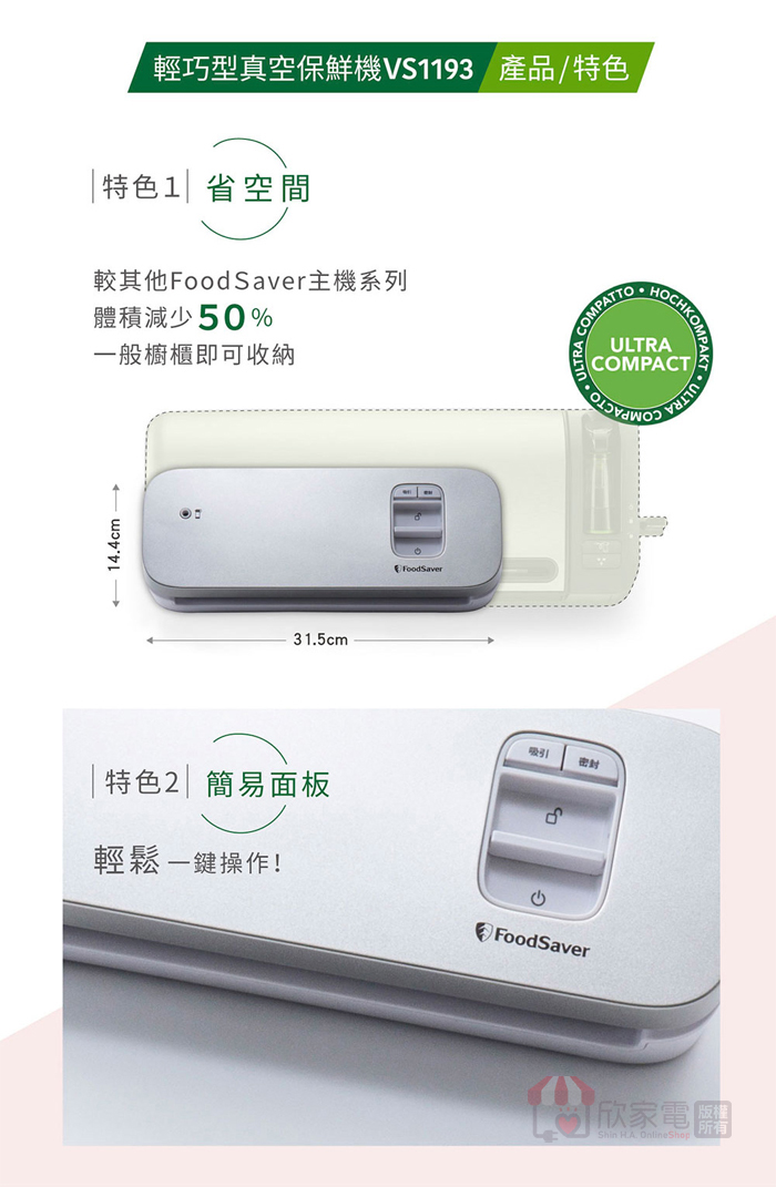 美國 FoodSaver 輕巧型真空保鮮機-白