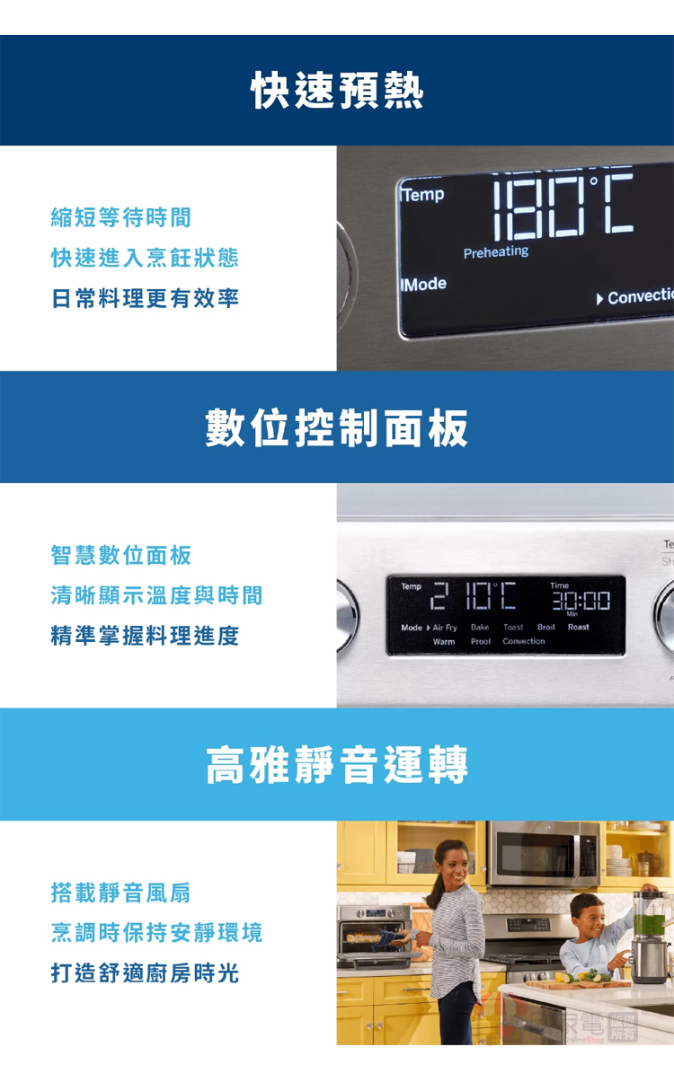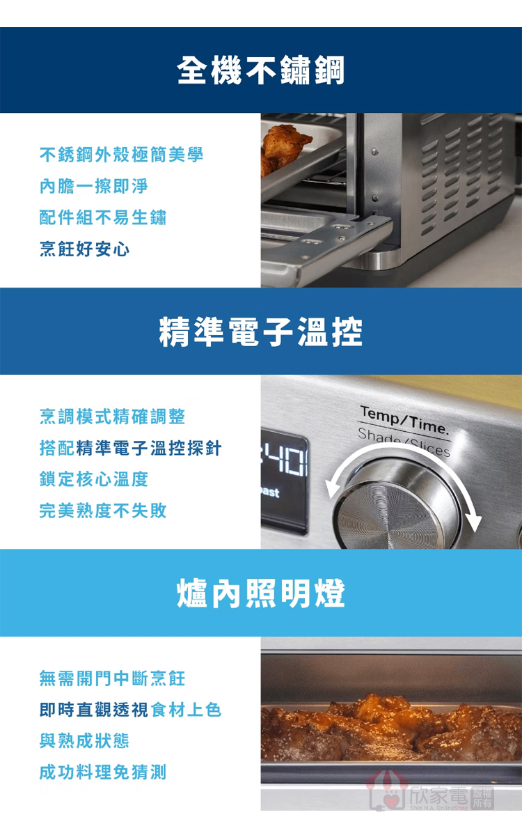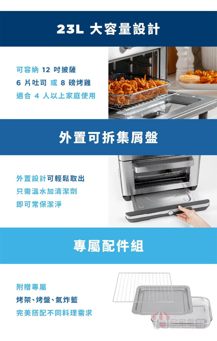 容量:可放置 12 吋披薩 / 6 片吐司 / 8磅烤雞 適合4人以上家庭使用