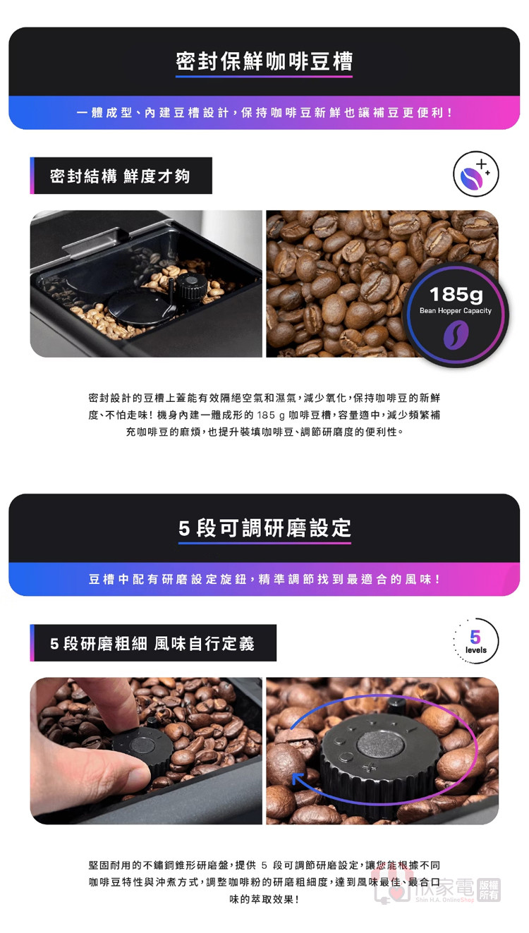 豆槽容量:185 克