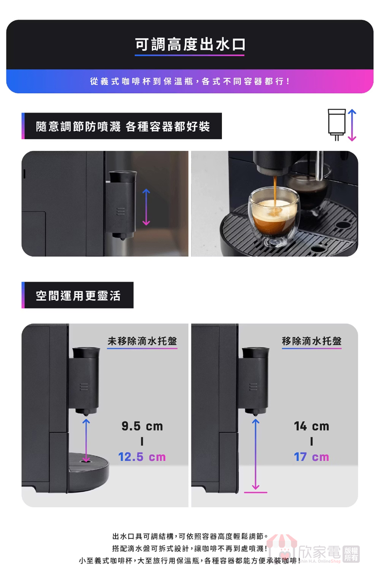 功能:義式/美式/我的設定(芮斯崔朵)/蒸氣/熱水