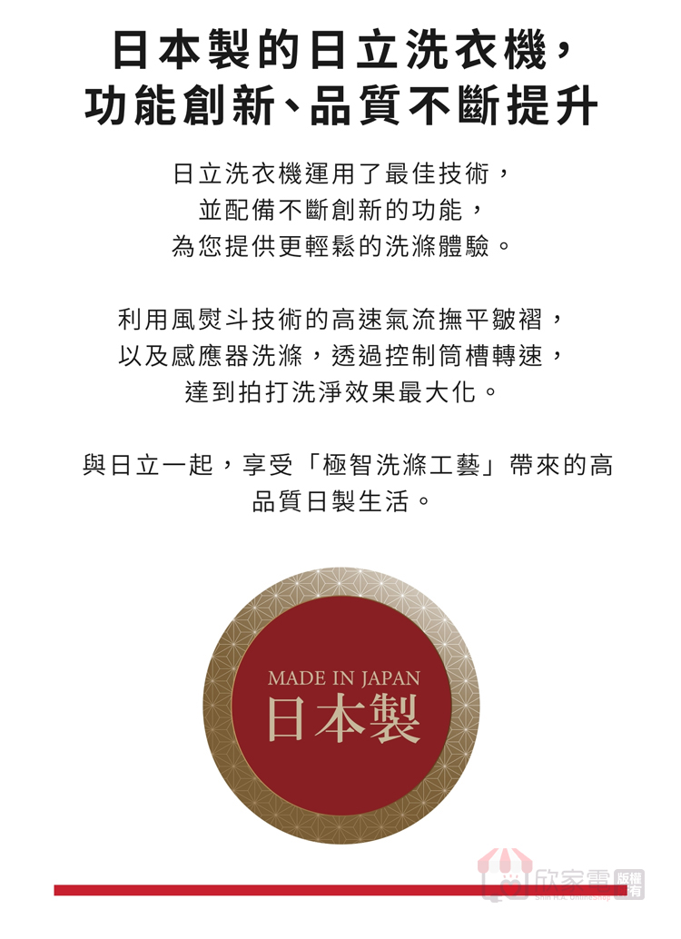 HITACHI 日立 12KG 日本原裝 變頻洗脫烘滾筒洗衣機-雪霧白