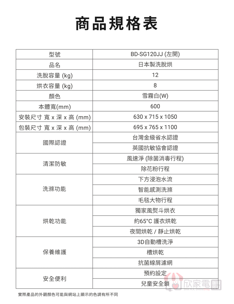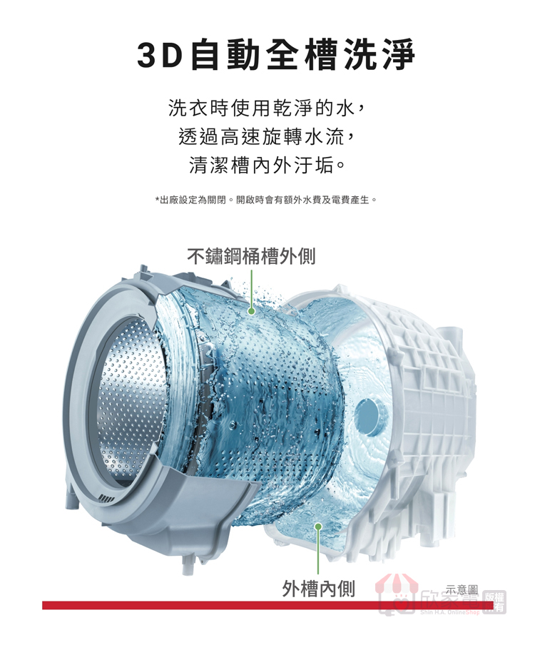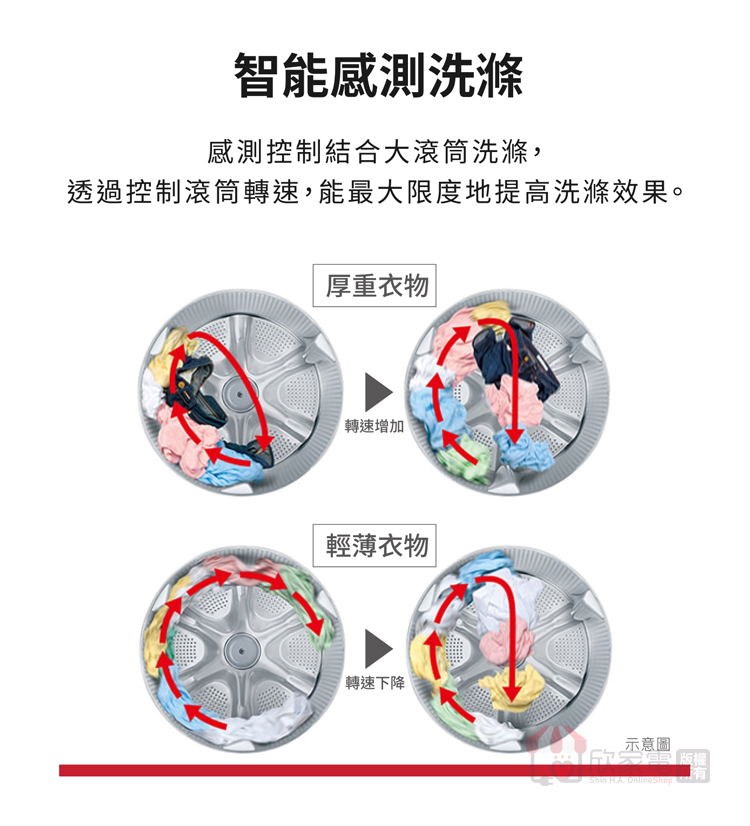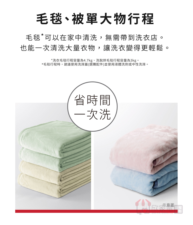 下方浸泡水流、智能感測洗滌、毛毯大物行程
