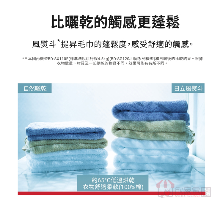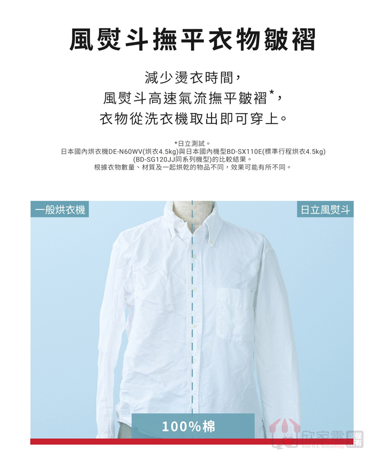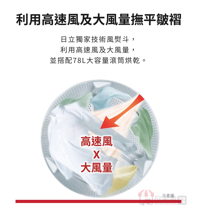 獨家風熨斗烘衣、約65°C 護衣烘乾、夜間烘乾 / 靜止烘乾