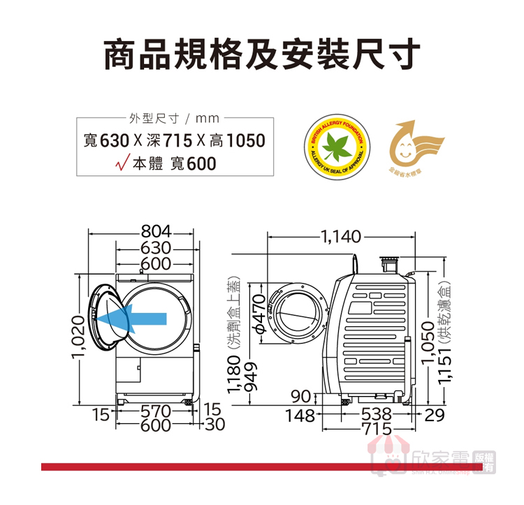 外型尺寸(mm):寬630 × 深715 × 高1050