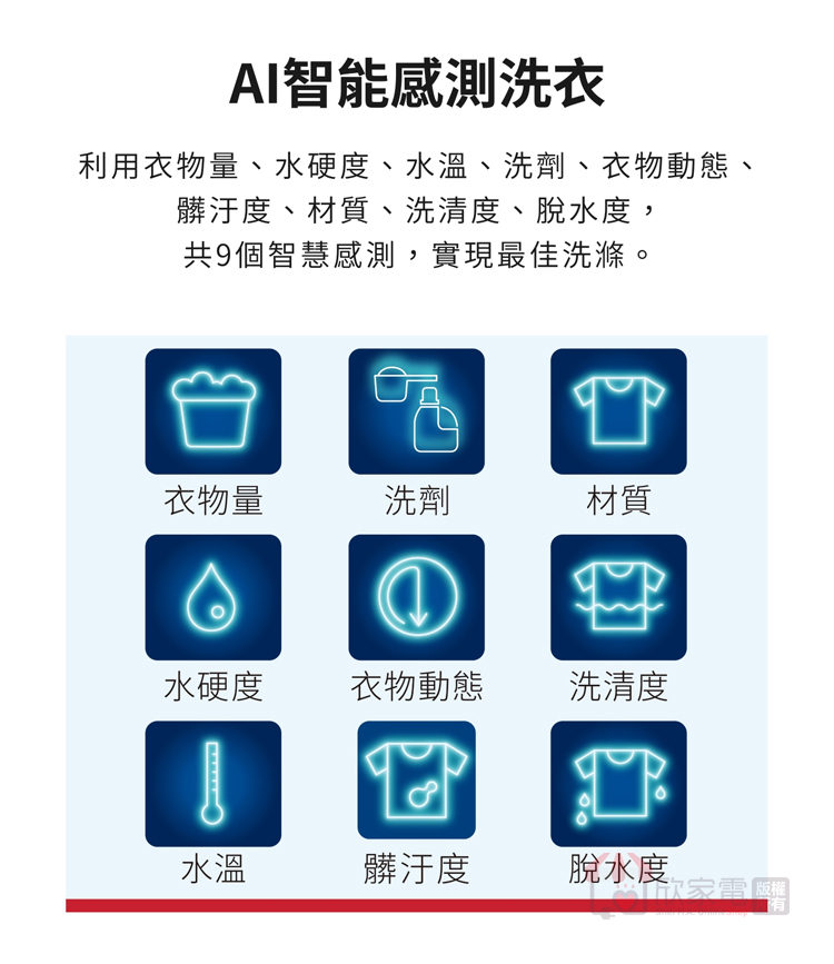 自主環淨科技 2.0、AI 智能感測洗衣、洗劑自動投入、IoT 遠距操控