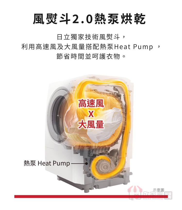 獨家風熨斗烘衣2.0、(Heat Pump 除濕式) 約65°C 護衣烘乾、夜間烘乾 / 靜止烘乾(下載行程)、蒸氣熨斗