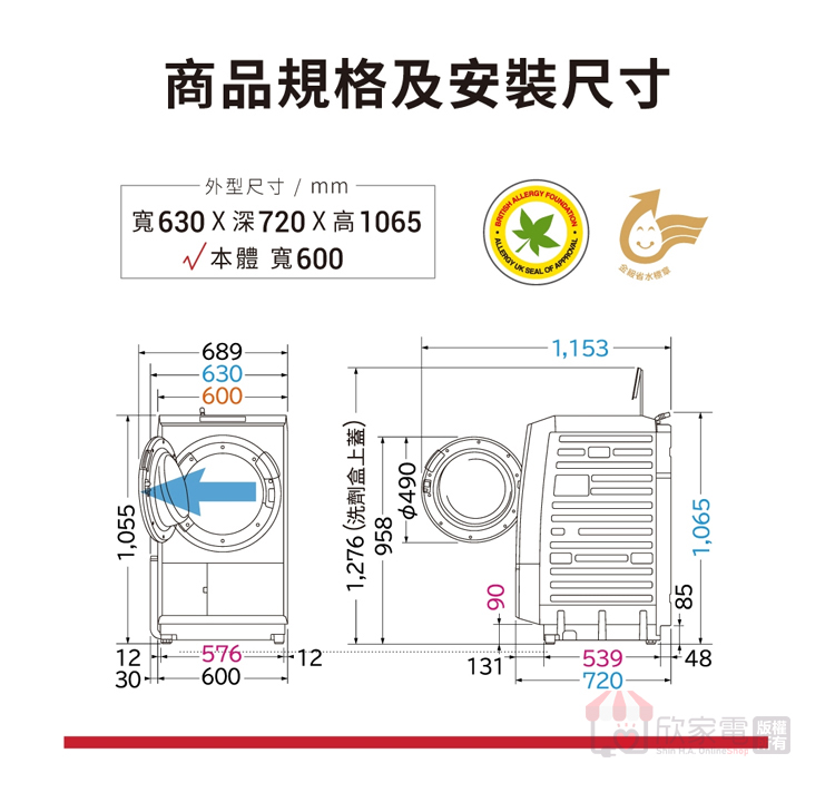 外型尺寸(mm):寬630 × 深720 × 高1065