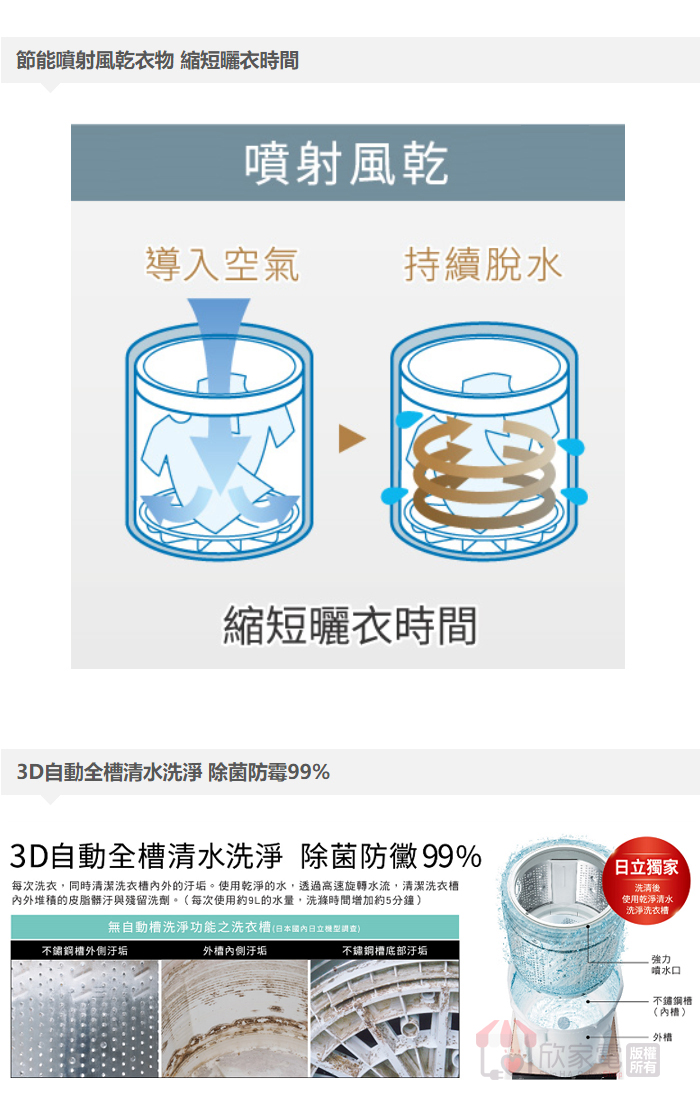 飛瀑洗淨(減少洗劑殘留)、3D自動槽洗淨/手動槽洗淨