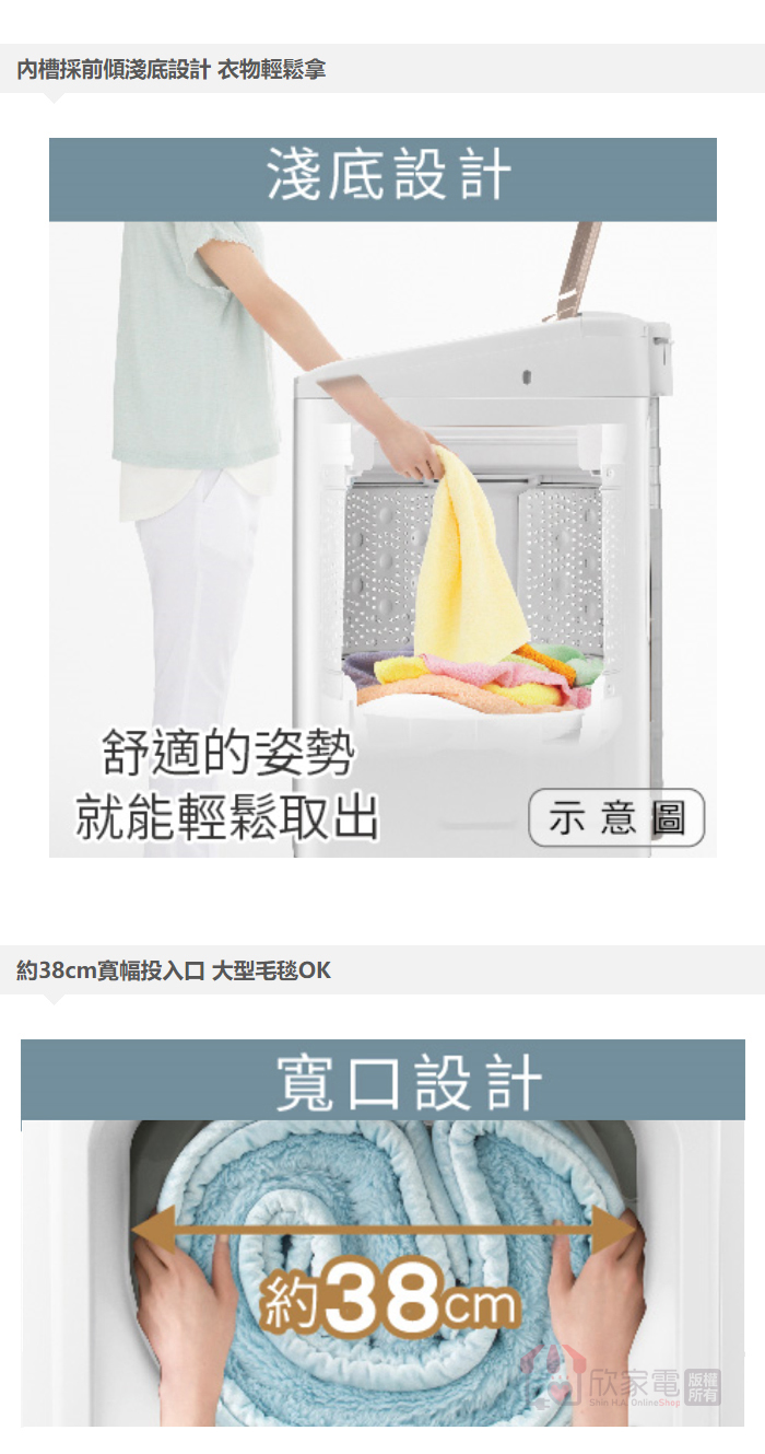 拋鬆脫水、預約/兒童安全鎖、上開門扉設計、質感琉璃面板設計