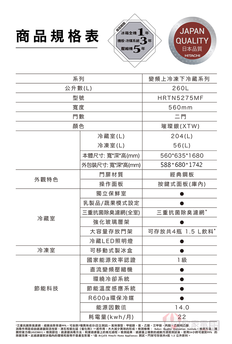 全機1年,機板、冷媒系統3年,壓縮機5年