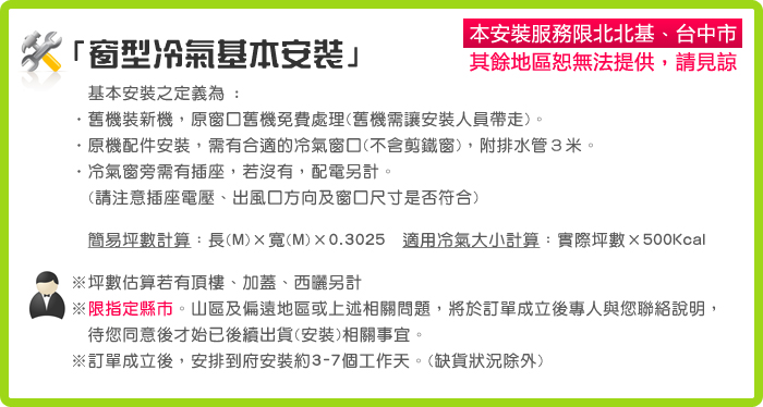 ※安裝處若無電梯需收取樓層搬運費,請至站內分類:其他服務「樓層費」加購。