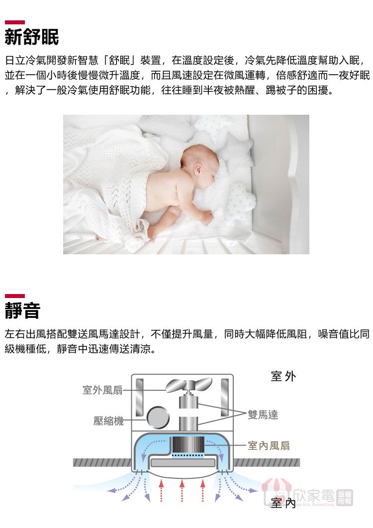 HITACHI 日立 5坪 變頻冷專雙吹窗型冷氣