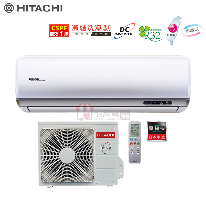 HITACHI 日立 4坪 【頂級R32】 變頻冷暖一對一分離式冷氣