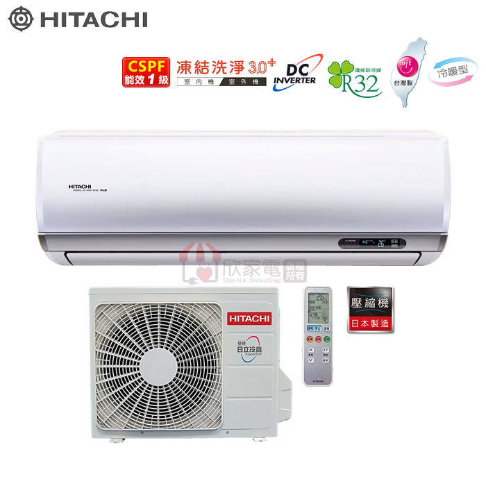 HITACHI 日立 4坪 【尊榮R32】 變頻冷暖一對一分離式冷氣