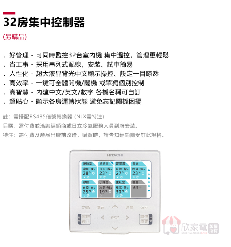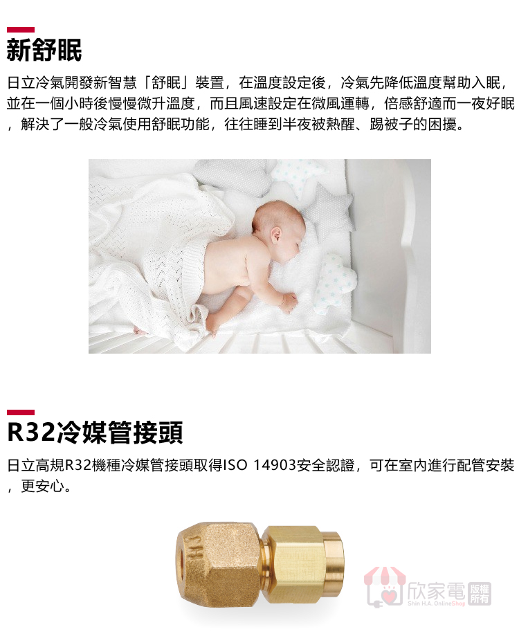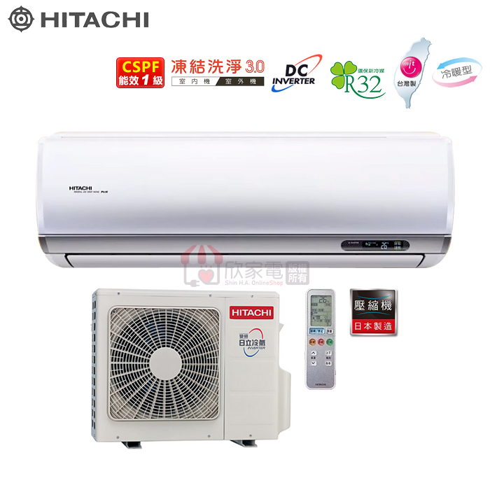 HITACHI 日立 6坪 【頂級R32】 變頻冷暖一對一分離式冷氣