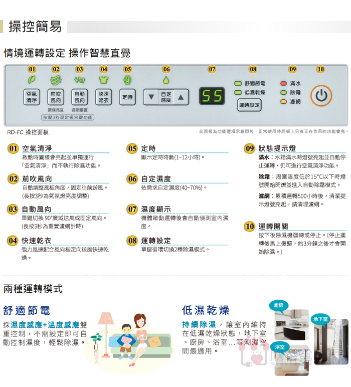 主要功能:舒適節電 / 低濕乾燥 / 快速乾衣 / 空氣清淨