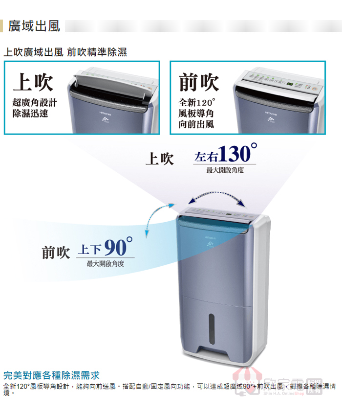 風向控制:超廣角上吹+前吹
