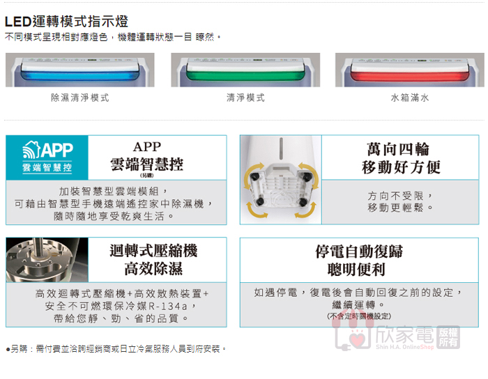 主要功能:舒適節電 / 低濕乾燥 / 快速乾衣 / 空氣清淨