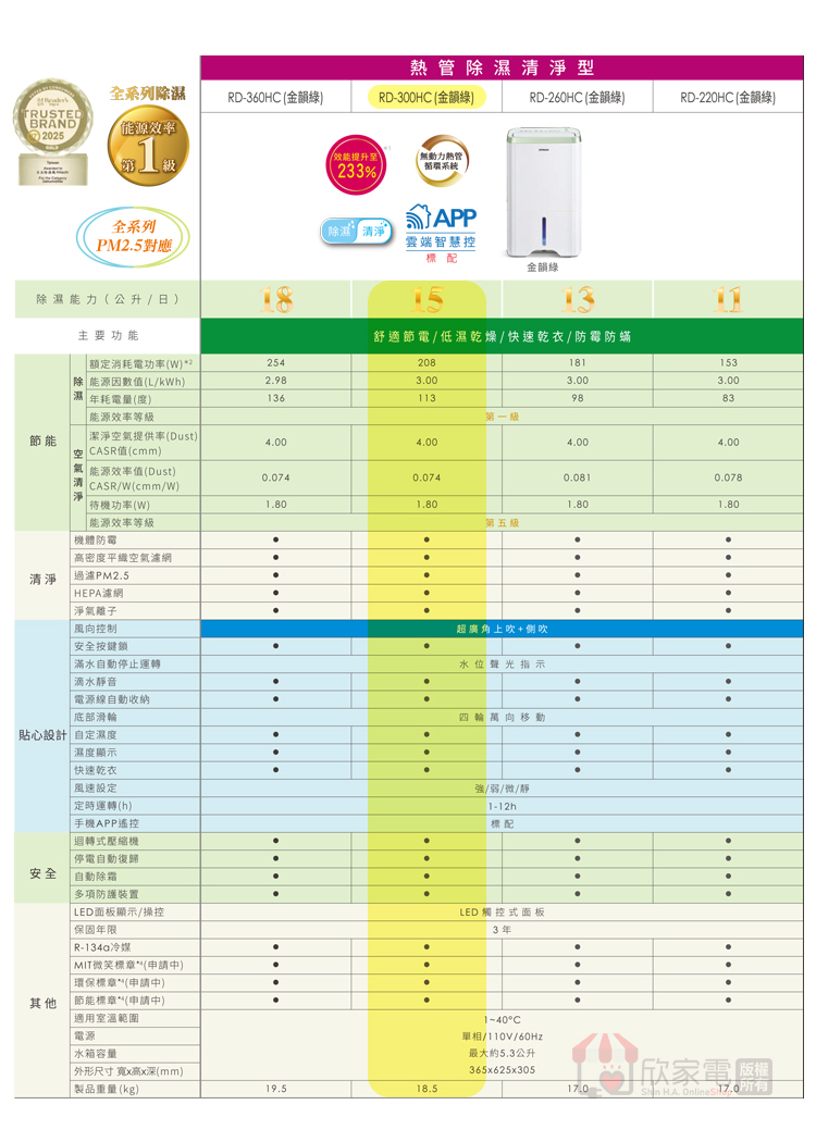 主要功能:舒適節電/低濕乾燥/快速乾衣/防霉防蟎