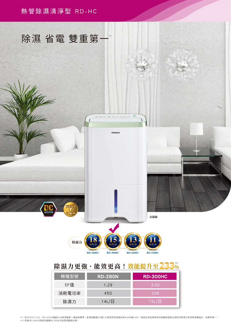 Hitachi 日立 15L 熱管除濕清淨型除濕機 -金韻綠